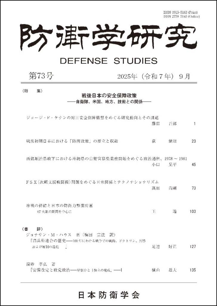 書名 | 防衛学研究』第73号 特集 戦後日本の安全保障政策―自衛隊、米国、地方、技術との関係― |